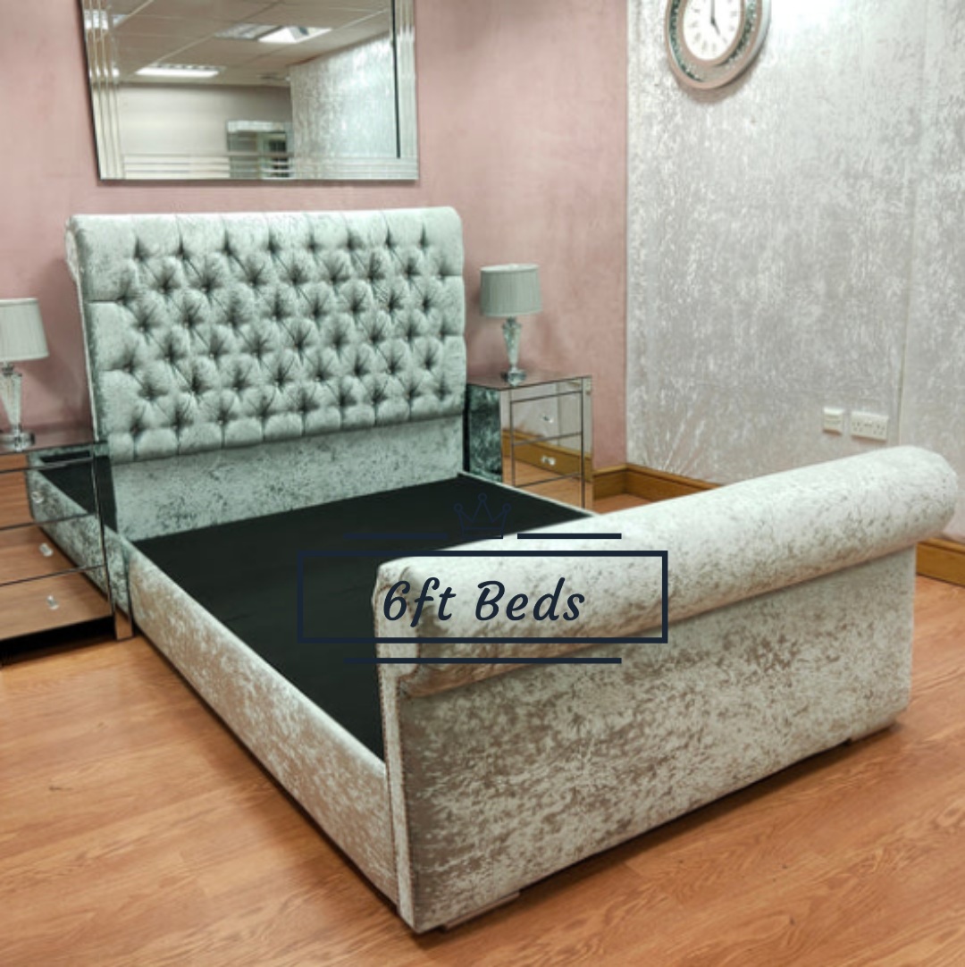 Luxury Crushed Velvet Chesterfield Sleigh 6ft Super King Frame Bed