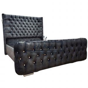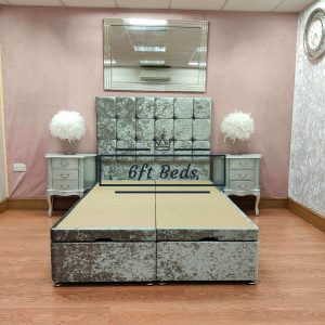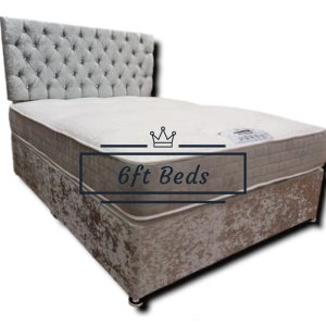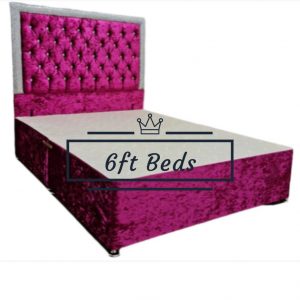 Crushed 6ft Super King Velvet Divan Bed with Chesterfield Headboard